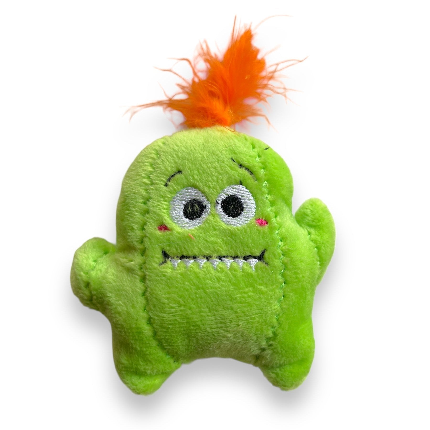 Peluche de tamaño mini en forma de cactus que en su interior contiene catnip; Es una hierba natural conocida por su efecto estimulante en los gatos que puede producir tranquilidad o comportamientos didácticos.