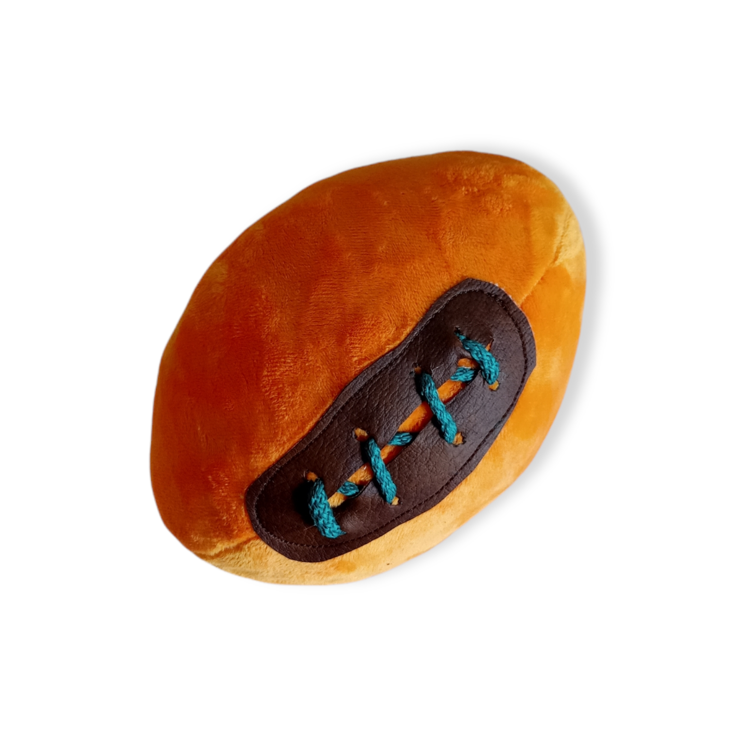 Peluche para perro en forma de Balón de fútbol Americano. Cuenta con tela de refuerzo para mayor resistencia y duración. Tiene pito y está relleno de algodón siliconado. Mide 22cms de largo x 17cms de ancho x 16cms de alto.