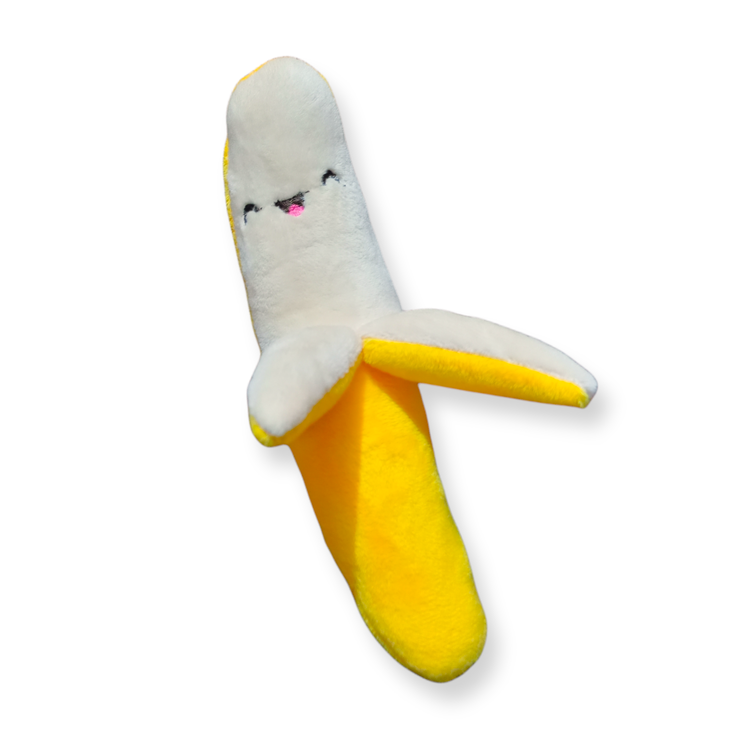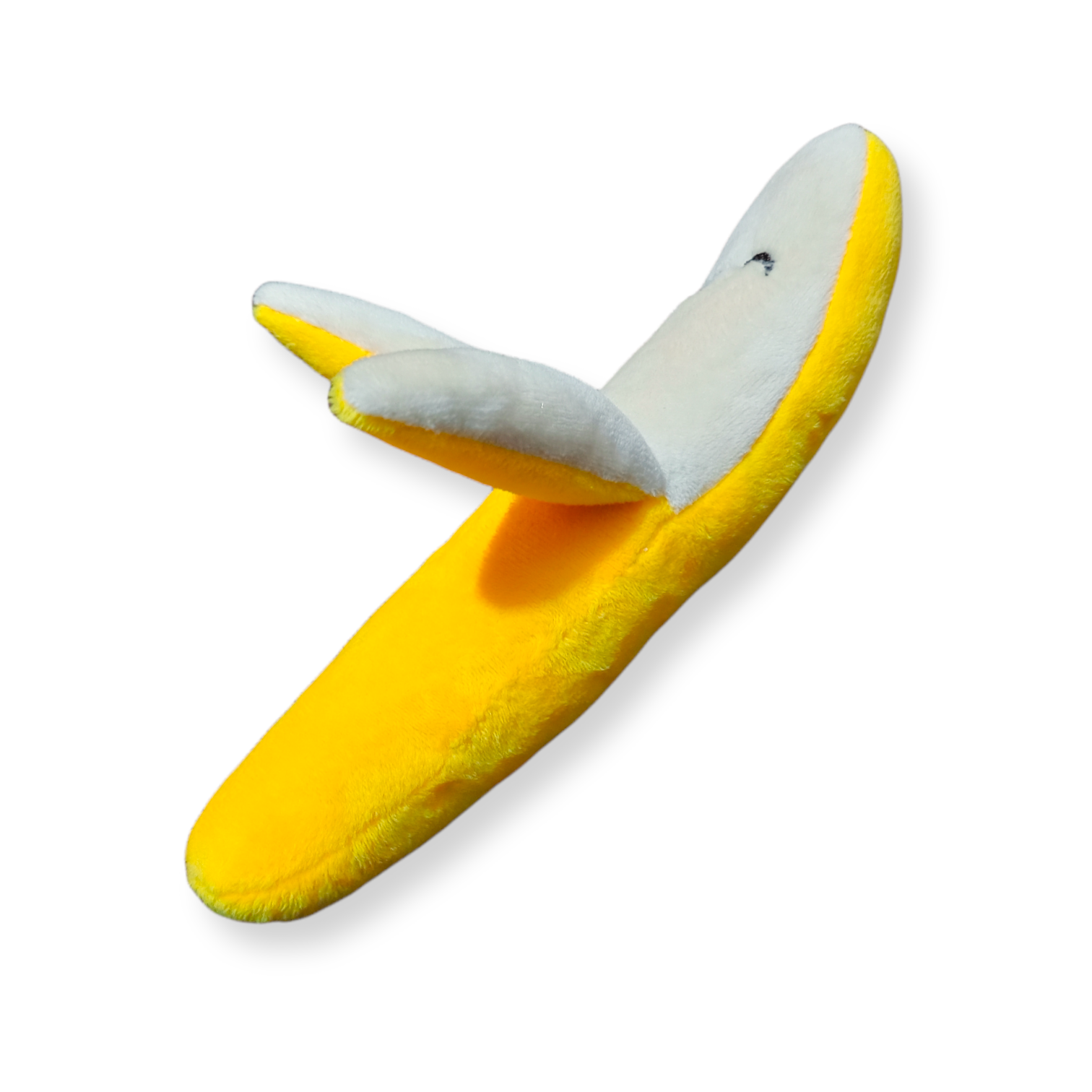 Peluche para perro en forma de Banano. Cuenta con tela de refuerzo para mayor resistencia y duración. Tiene pito y está relleno de algodón siliconado.