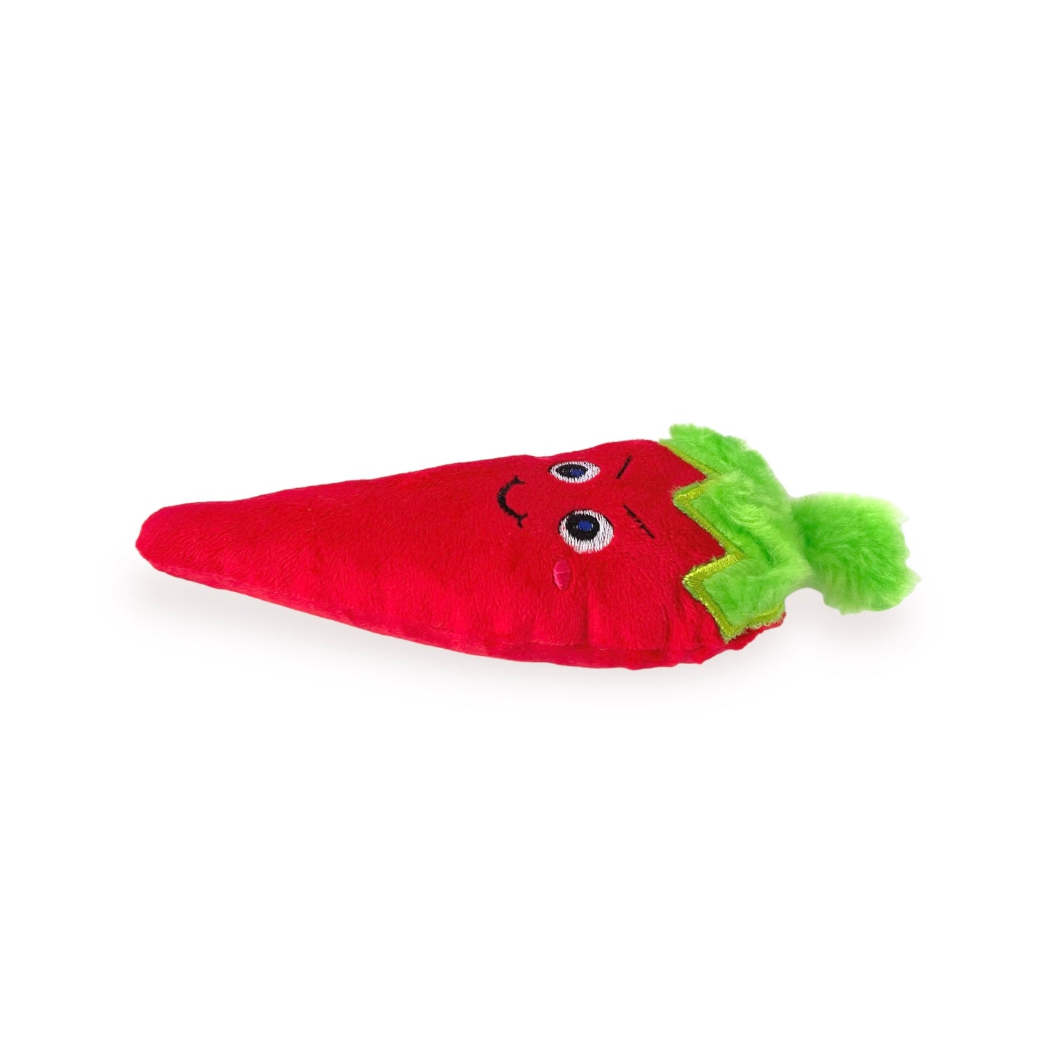 Peluche para perro en forma de Chile picante. Cuenta con tela de refuerzo para mayor resistencia y duración. Tiene pito y está relleno de algodón siliconado. Mide 20cms de largo x 16cms de ancho x 6cms de alto.