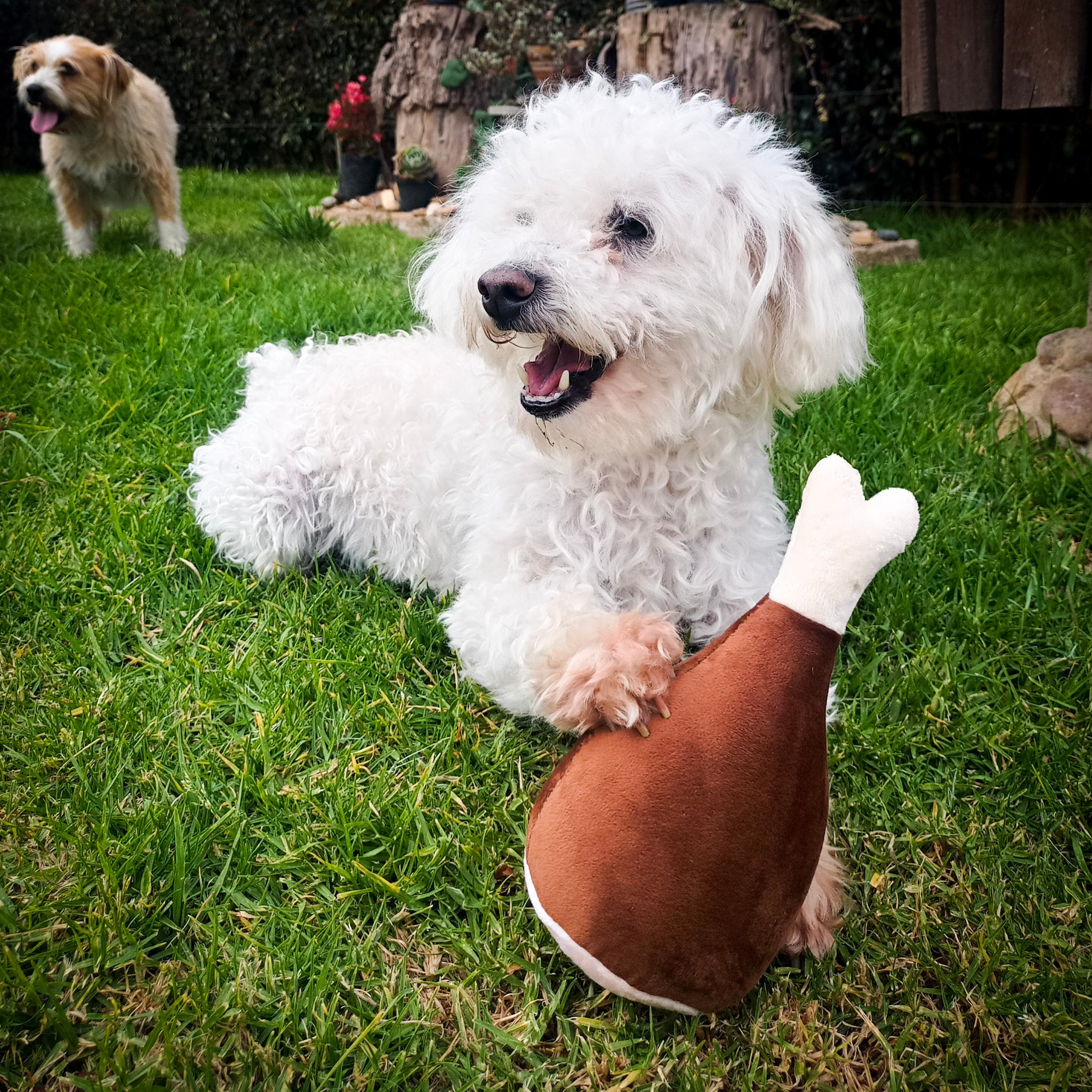Disfruta con tu mascota del peluche de Pernil de cerdo. Hecho de suave algodón siliconado y con refuerzo de entretela que permitirá una mayor resistencia. Perfecto para su entretenimiento y diversión.