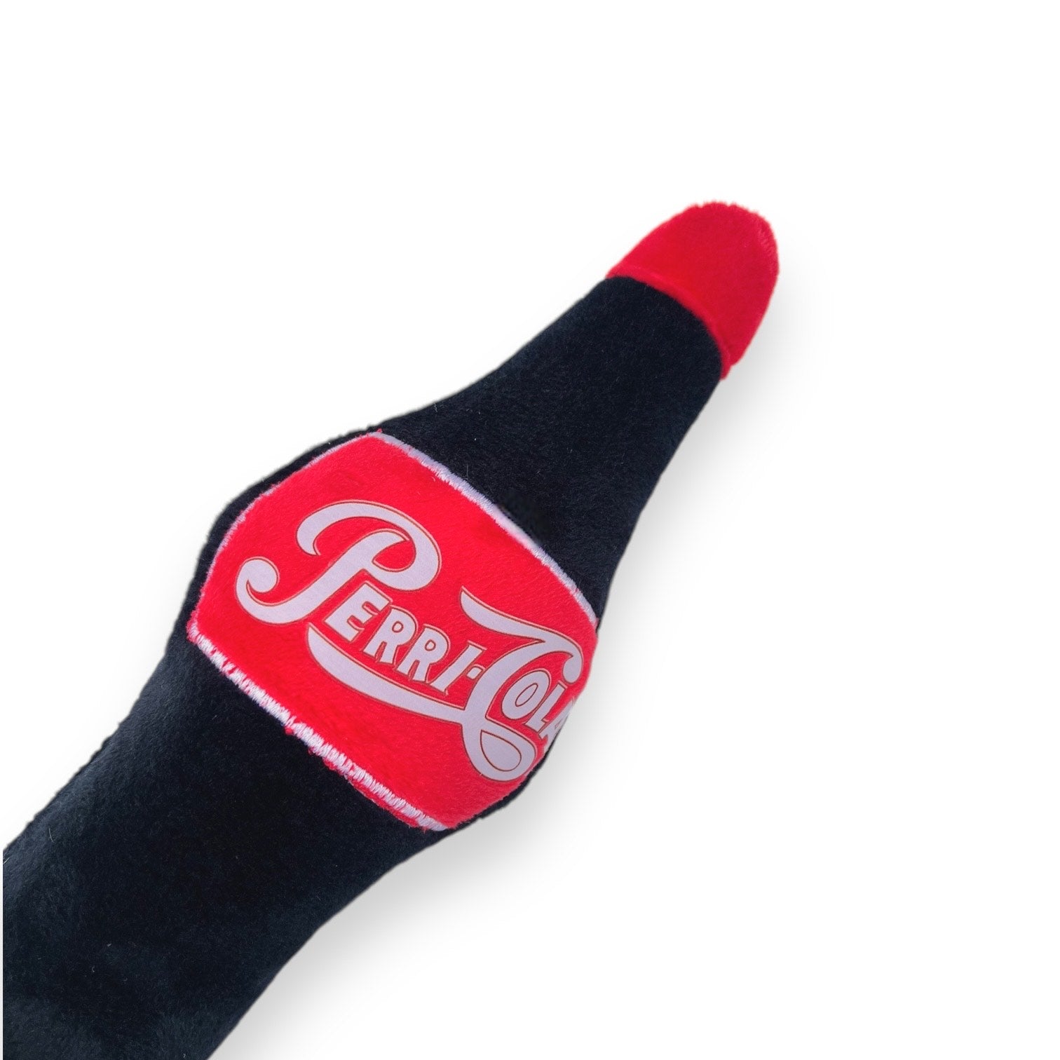 Peluche para perro en forma de botella de perricola. Cuenta con tela de refuerzo para mayor resistencia y duración. Tiene pito y está relleno de algodón siliconado. Mide 23cms de largo x 9ms de ancho x 6cms de alto.