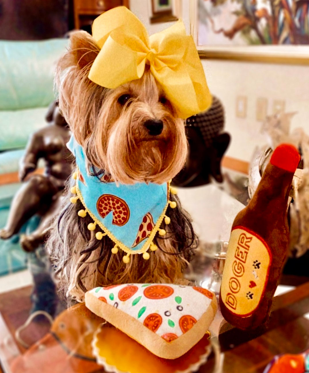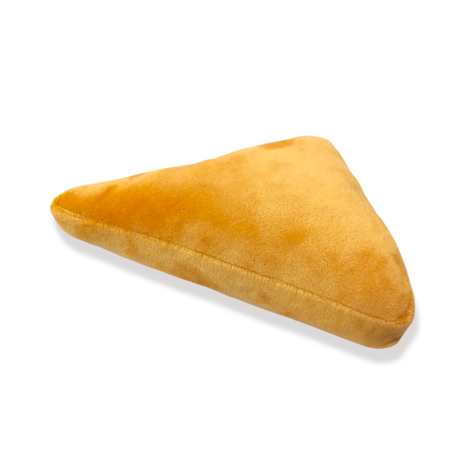Peluche para perro en forma de Pizza. Cuenta con tela de refuerzo para mayor resistencia y duración. Tiene pito y está relleno de algodón siliconado. Mide 15cms de largo x 15ms de ancho x 4cms de alto.