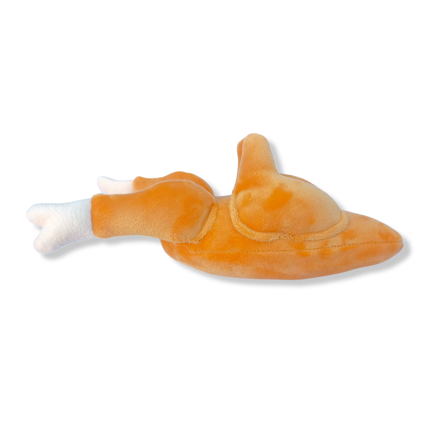 Peluche para perro en forma de pollo asado. Cuenta con tela de refuerzo para mayor resistencia y duración. Tiene silbato y está relleno de algodón siliconado.