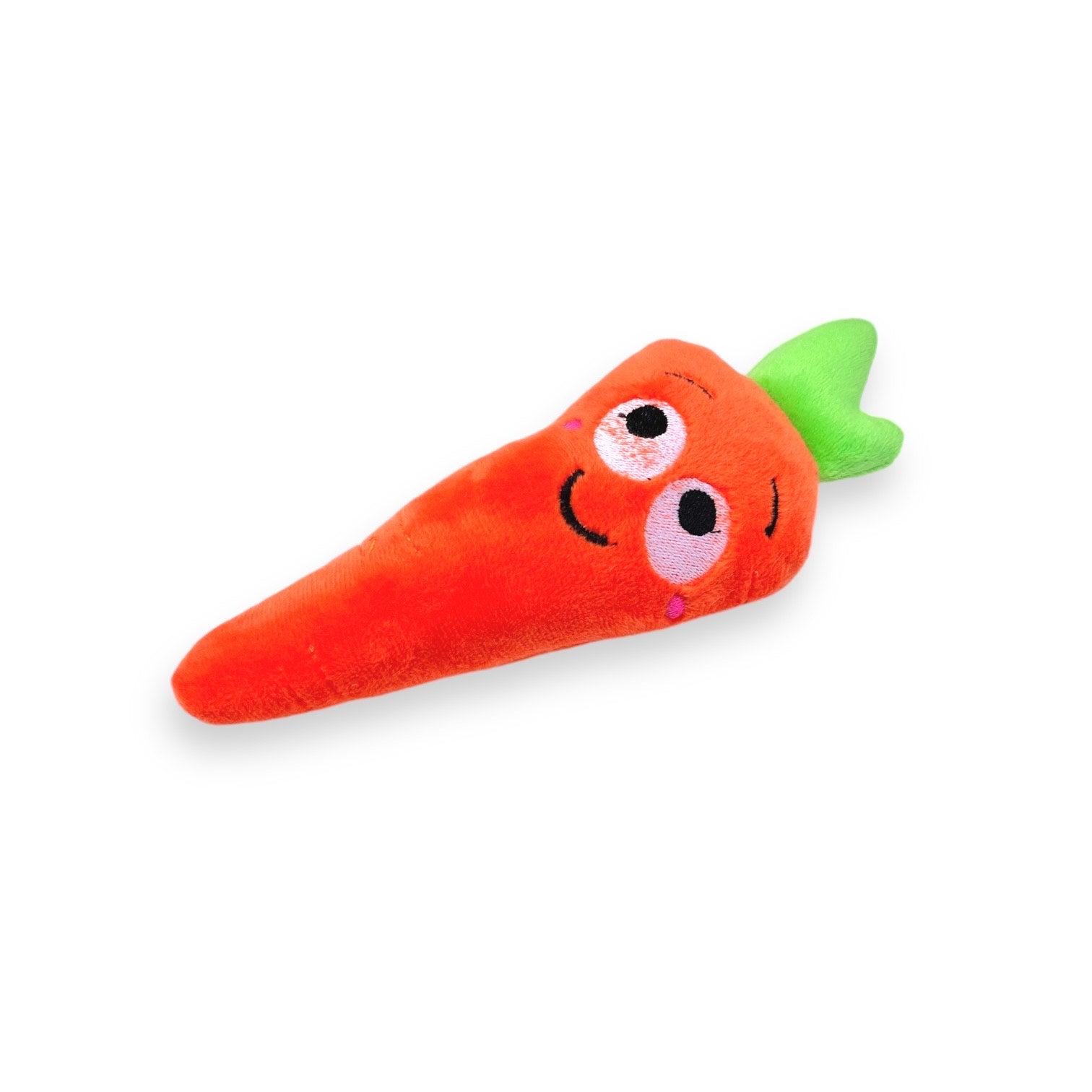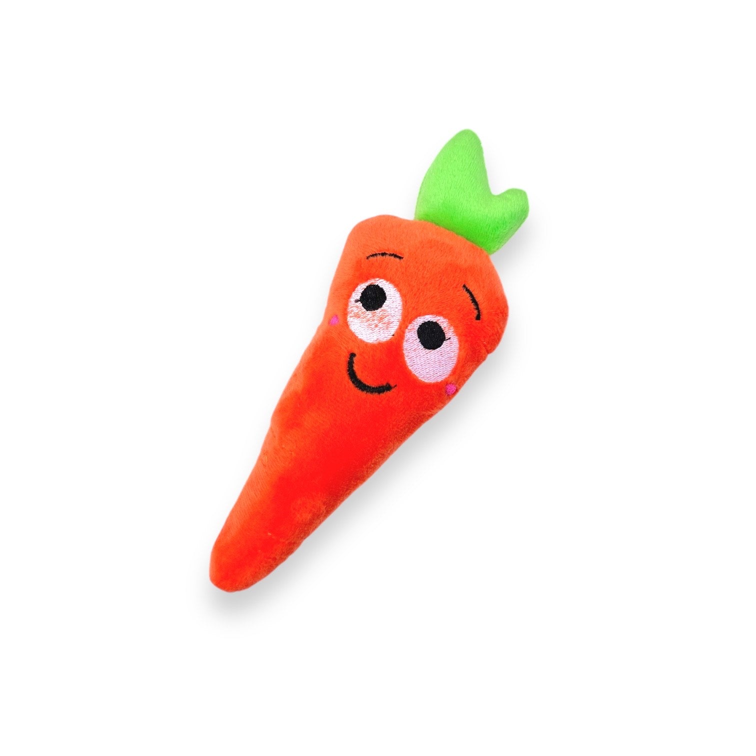 Peluche para perro en forma de Zanahoria. Cuenta con tela de refuerzo para mayor resistencia y duración. Tiene pito y está relleno de algodón siliconado. Mide 20cms de largo x 8cms de ancho x 4cms de alto.