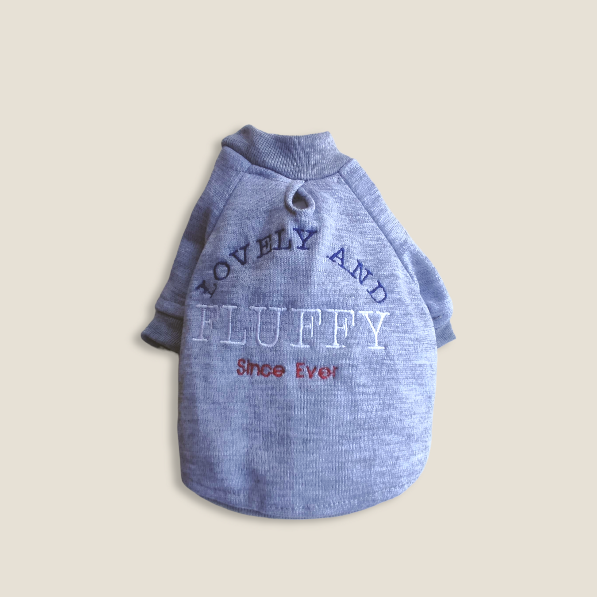 Prenda elaborada en algodón perchado de color Gris y bordado de "Lovey and Fluffy"